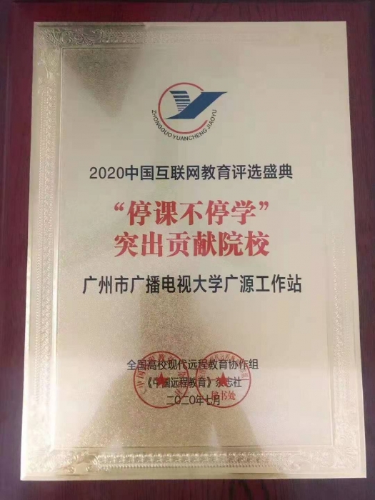 荣获教育部高校远程协作组与远程教育杂志社举办的2020年度“停课不停学”突出贡献院校称号(广东上榜六所高校之一)