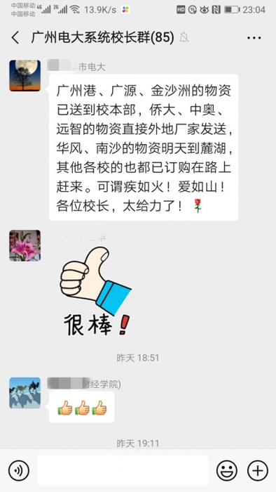 湖北电大、武汉电大的一举一动牵动着广州电大人的心。广州电大人秉承“全国电大是一家”的宗旨,即刻响应国家开放大学的号召,校党委、行政高度重视,周密部署,迅速行动,与时间赛跑、与病毒较量,向全系统进行了紧急动员。我分校在毕校长亲自指挥策划下,积极寻找医护物资货源,反复核查,确定了消毒水生产厂家。同时我校校办、学生科、电大部等部门发动师生踊跃捐赠、共赴时艰,在第一时间立即行动起来。