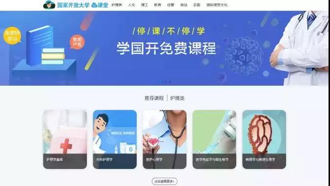 国家开放大学云课堂学习平台开放了300余门免费课程涵盖护理、人文、理工、教育、经管、政法、农医、语言等多学科门类,供您选择,在家也要充实人生。