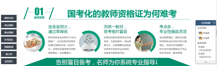 (在线) http://wx.020gyedu.com/norm/teacher(请点击打开) 学习形式:网络在线学习 优 势:可以反复学习、重复听课、随时随地不限次数、方便价廉、海量习题库 报读指引:在我校网站注册、选课、缴费、开通账号、开始学习 缴费办法:选课后请加微信转账 报名电话:13724838798 毕老师(微信同号) 职业考证